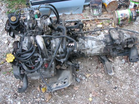 Aja kupim motor EJ20 z downpajpom vred, ali drugače povedano kupim prevrnjenega turbaka ali kakšnega, ki mu je vlak zapelju čez zadnji del (dif naj bo cel) :lol: