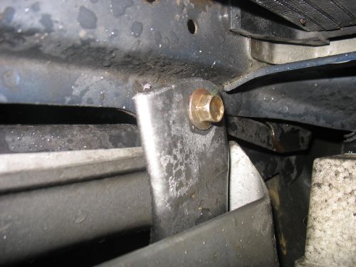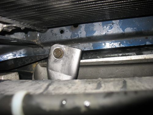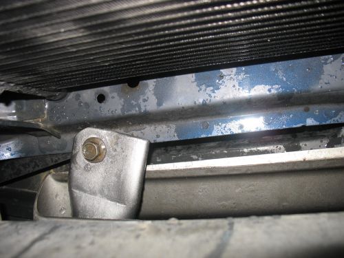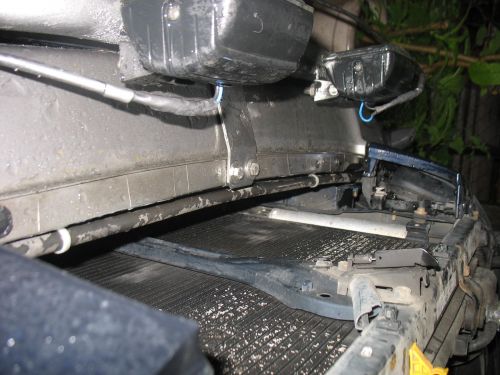 Pritrjeno je zgoraj z ploščico na mesto, kjer je čep za odbijač (čep vzet stran in vtisnjena matica). Spodaj pa na tista dva vijaka pred hladilnikom (spodaj je cev stisnjena in privita na ta dva vijaka). Bom dal slike pritrdišč.