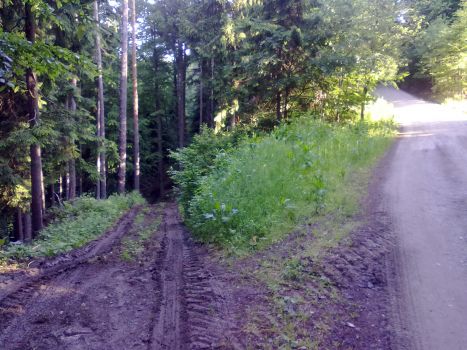 zgodba: in sem šel s foresterjem v forest napravljat drva. da pa ne bi preveč daleč nosil motorke, cepina, olja, bencina, kajle, ... sem se sputil po eni vlaki (svinsko razmočeni) malo nižje cca 500m - pa še strma ni bila preveč, al pa tudi (gamsi so že tak, da je kr naporno za peš it)