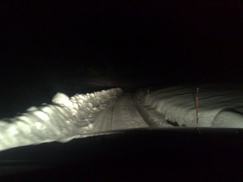 , nato adrenalinska vožnja po urejenem 10cm zvoženem cestišču iz ovinka v ovinek z ritko na počes, nato pa jeba ker se je ratrag pelu čist dol do Uštarije na Kranjskem raku in je steptal tisto mehko podlago in se je pogrezal in subi je komaj plezu do tistega kamnoloma.