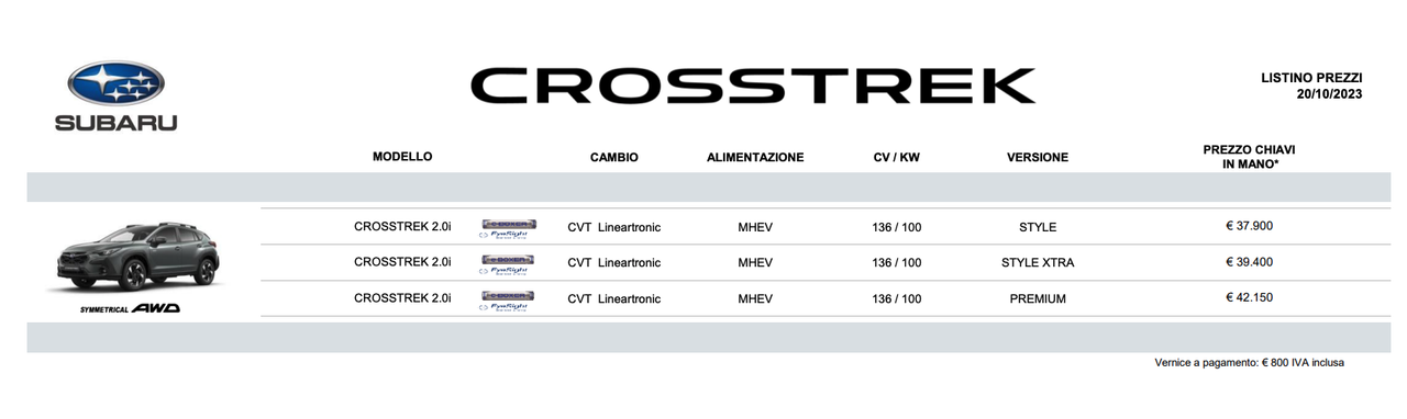 Re: XV ala Crosstrek